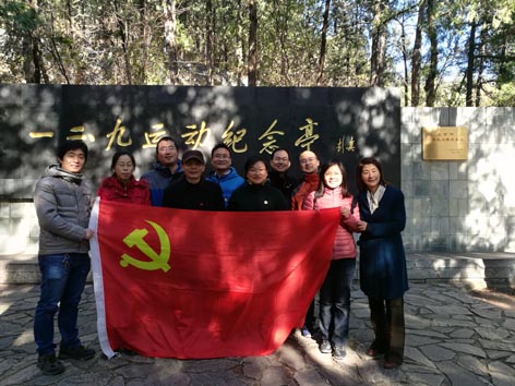 学习交流结束后,两支部党员同志共同前往香山樱桃沟参观“一二·九”运动纪念亭。现场听取了“一二·九”运动的历史及伟大意义,观看了“铭记抗战历史,传承爱国情怀”主题展览,面对党旗重温入党誓词。党员同志纷纷表示这样的党员活动形式活泼新颖,既有理论学习环节,也没有脱离科研中心工作,还有紧扣主题的党日实践活动,希望多举行类似的党支部活动。双方支委会也就进一步加强支部共建工作,联合开展各项活动,深化政治理论学习,为科研交流搭建平台进行了深入探讨。