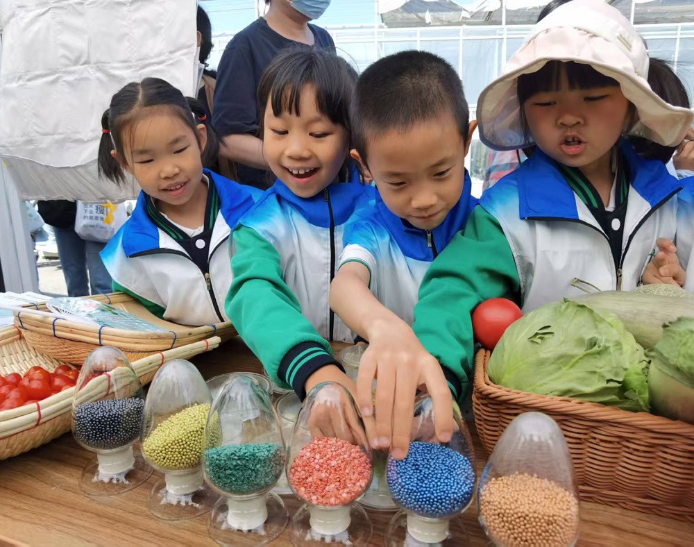 孩子们对“神奇”的彩色包衣种子充满好奇。中国农科院蔬菜所供图