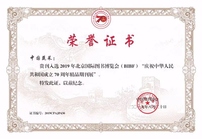 8月21日-25日,由中国期刊协会组织的“庆祝中华人民共和国成立70周年精品期刊展”上获悉,《园艺学报》、《中国蔬菜》荣幸入选“庆祝中华人民共和国成立70周年精品期刊展”。该展向伟大祖国70华诞献礼,并设“70年精品期刊”“主题宣传好文章”“致敬创刊70年”“70年期刊记忆”四大主题。
