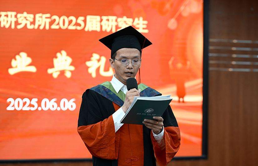 毕业生代表董丽娜、徐迎澳、陈海旭、翟荣启分别发言,对研究所领导和导师的培养表示感谢、对同学的帮助表达感怀、同时对毕业生同学送上最真挚的祝福。