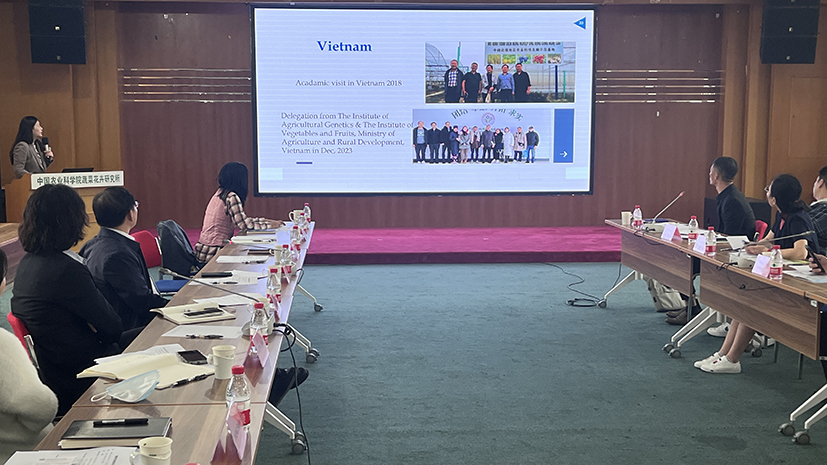Recently, accompanied by Yu Qian, deputy director of the International Cooperation Bureau, CAAS, Nguyen Huu Hoai Phu, Deputy Director of the Department of Agriculture and Rural Development of Ho Chi Minh City, and Pham Dinh Dung, Head of Board, High-tech Agricultural Park Management Board, led an 11-member Vietnamese delegation to visit the Institute of Vegetables and Flowers, Chinese Academy of Agricultural Sciences. Shengping Zhang, deputy director of the Institute of Vegetables and Flowers, Lei Li, deputy division chief of the Scientific Research Office, and Shuhua Yang, dean of the Flower Research Department, attended the event.
