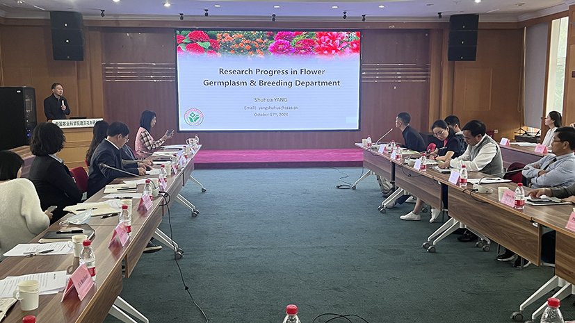 After the visit, the two sides held a seminar. Deputy Director Yu Qian delivered a welcome speech. Dr. Lei Li introduced the achievement of the Institute of Vegetables and Flowers, and Dr. Shuhua Yang shared the scientific research progress of the flower breeding. The meeting was chaired by deputy director Shengping Zhang.