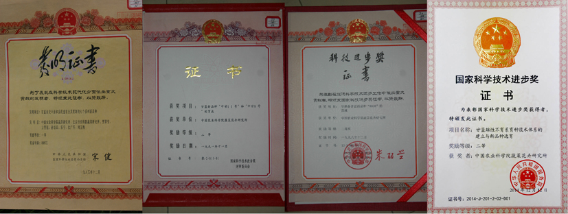 (2)甘蓝新品种“中甘11号”和“中甘8号”的育成,1991年获国家科学技术进步奖二等奖