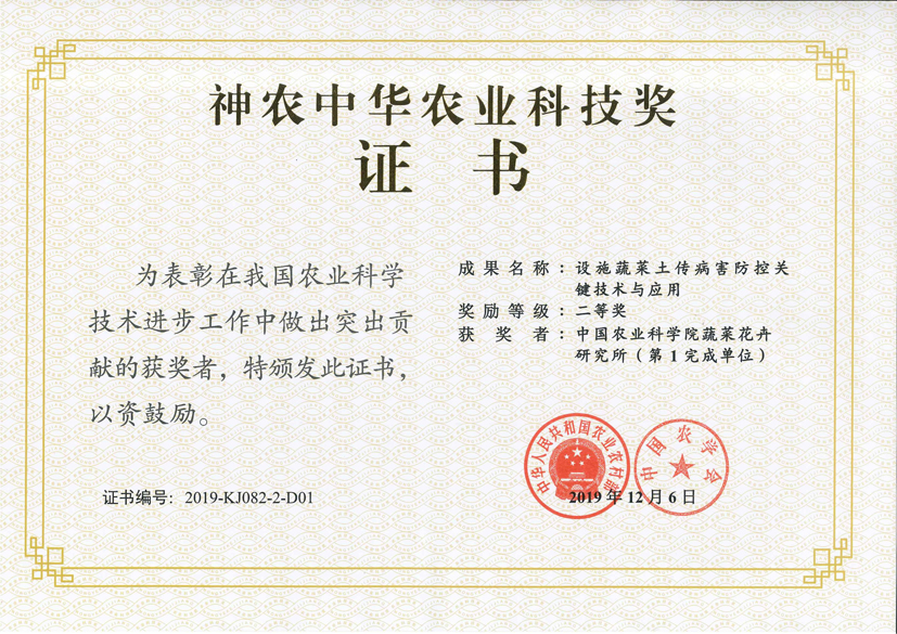 (4)设施蔬菜土传病害防控关键技术与应用,2019年神农中华农业科技二等奖