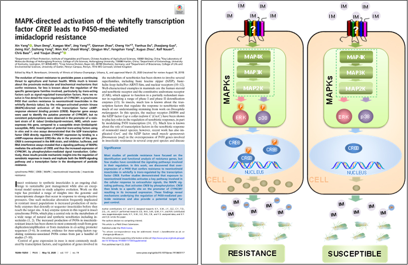 (2)Yang, X., Deng, S., Wei, X., et al. MAPK-directed activation of the whitefly transcription factor CREB leads to P450-mediated imidacloprid resistance. Proceedings of the National Academy of Sciences of the United States of America, 2020, 117(19): 10246–10253.