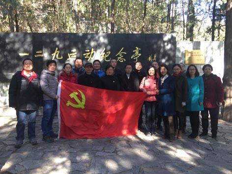 学习交流结束后,两支部党员同志共同前往香山樱桃沟参观“一二·九”运动纪念亭。现场听取了“一二·九”运动的历史及伟大意义,观看了“铭记抗战历史,传承爱国情怀”主题展览,面对党旗重温入党誓词。党员同志纷纷表示这样的党员活动形式活泼新颖,既有理论学习环节,也没有脱离科研中心工作,还有紧扣主题的党日实践活动,希望多举行类似的党支部活动。双方支委会也就进一步加强支部共建工作,联合开展各项活动,深化政治理论学习,为科研交流搭建平台进行了深入探讨。