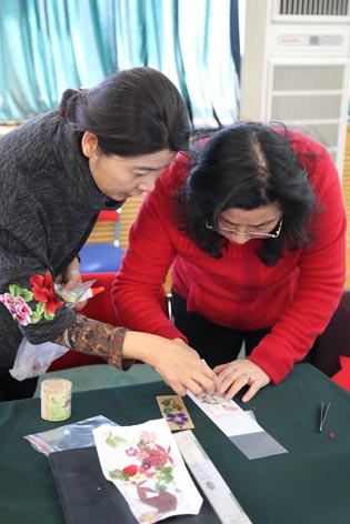 女职工们自己动手制作压花书签将活动推向高潮。大家利用洪波教授精心准备的各类干燥花材,发挥自身的想象力与创造力,经过构图、粘胶固定、封膜等一系列步骤创作出一幅幅生动的作品。洪波教授间或给予个别指导,并将优秀作品一一在现场展示。女职工们非常享受这种欣赏美、创造美、分享美的惬意和闲适。