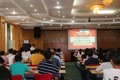 所党委书记周霞以“不忘初心、牢记使命”为主题,从中国共产党发展历程、马克思主义在中国的伟大实践和贯彻落实习近平新时代中国特色社会主义思想等三个方面综合阐释新时期共产党员如何才能做到“不忘初心 牢记使命”的基本要求,给全体与会党员上了一堂生动党课。要求全体党员要深入学习贯彻党的十九大精神和习近平新时代中国特色社会主义思想,特别是习近平总书记“三农”思想、科技创新思想以及致中国农科院建院60周年贺信精神,以先进典型为榜样,弘扬党的优良传统和作风,不忘初心,牢记使命,在“三个面向”的指引下,以高度负责的使命意识和时不我待的紧迫感,撸起袖子加油干,振奋精神再出发,找准方向、埋头苦干、锐意创新、不懈奋斗,谱写出无愧于时代、无愧于人生的新篇章。