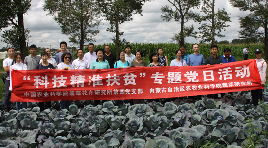 共建支部党员们接着来到乌兰察布市察哈尔右翼前旗水泉村,与该村党支部进一步联合,形成1+1+1的支部联合模式。村党支部书记张宏如详细介绍了该村的蔬菜种植情况并提出了存在的问题及技术需求。据悉,水泉村以甘蓝、白菜、洋葱等露地冷凉蔬菜为主,面积600多亩。大家在田间地头进行深入交流之后,专家们在作物种类及茬口安排、品种选择、高效种植模式、病虫害绿色防控等方面提出了建设性意见,明确了下一步新品种试种的方向和重点。三个支部的党员们一致表示,今后要充分发挥联合党支部对当地蔬菜产业发展的科技支撑作用,整合各个部门、各位党员的优势,推广更多的中蔬系列优良品种和技术,为当地冷凉蔬菜产业的绿色健康发展、当地农户的脱贫攻坚起重要的助推作用。