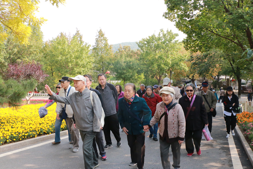 秋风散云去,枫叶待红来。18日,所党办组织全所离退休职工近百人到北宫国家森林公园秋游。