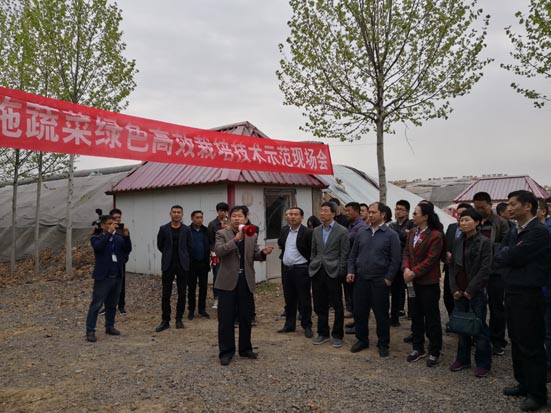 2019年4月19日,由国家大宗蔬菜产业技术体系栽培与土肥研究室主办、中国农业科学院蔬菜花卉研究所承办的“设施蔬菜绿色高效栽培技术示范现场会”在山东寿光顺利召开。会上展示了由国家大宗蔬菜产业技术体系温室蔬菜栽培岗位科学家于贤昌研究员团队研发的两项设施蔬菜绿色高效栽培技术。第一项为“设施蔬菜低温弱光诱抗增产技术”,通过滴管型和叶面喷雾型氨基酸水溶肥的配合使用,显著提高了冬季和早春季节设施蔬菜耐低温弱光能力,冬春期间日光温室黄瓜可增产30%以上,甜椒可增产19%以上,该项技术处于中试阶段,预计近期推向市场。第二项,设施果菜残株原位还田技术,通过“秸秆粉碎--旋耕--覆地膜--高温闷棚--凉垡—起垄”处理,使设施果菜秸秆不出温室,直接还田利用,实现了蔬菜废弃物的资源化利用,改善了土壤理化性状,对设施蔬菜产业的绿色高效发展具有重要意义。