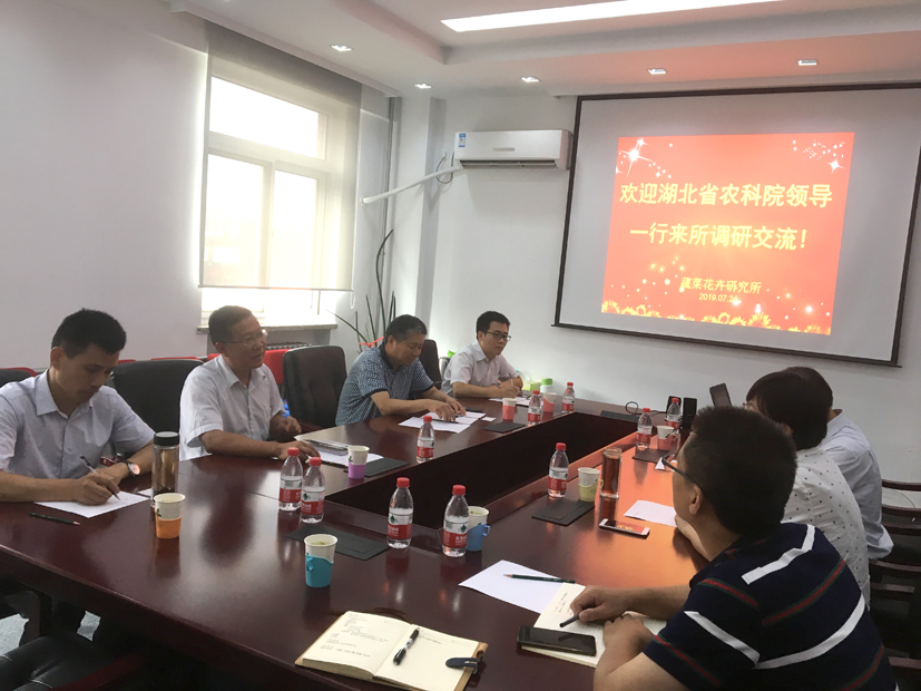 7月24日,湖北省农业科学院副院长邵华斌一行来所调研。蔬菜花卉所所长张友军,党委书记周霞,副所长张圣平,科研处副处长李衍素等参加座谈。