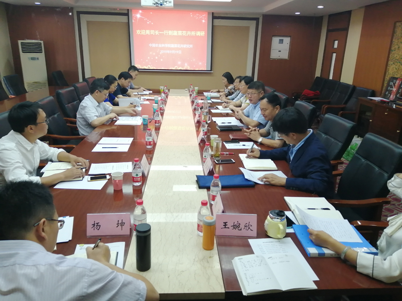 种业管理司农作物种业处和畜禽种业处、科技教育司体制改革处、中国农业科学院成果转化局及蔬菜花卉所科研处、人事处、财务处、成果转化处、茄科研究室、植物保护研究室、质量安全与检测技术研究室等同志参加调研工作。会议由张友军所长主持。