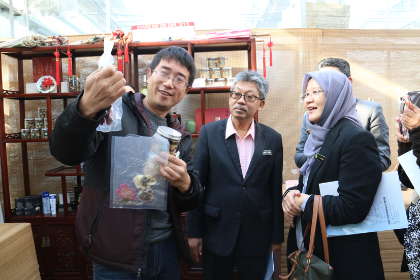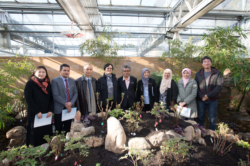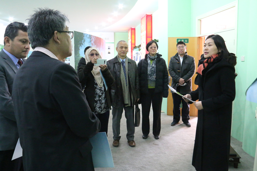随后,穆罕默德一行在周霞书记的陪同下参观了蔬菜所所区及花卉牡丹展示园。在展示园内,薛璟祺博士向外宾介绍了我所牡丹研究进展及牡丹成果转化各类产品,穆罕默德对牡丹花研究及其产品表示出浓厚的兴趣,当场试用产品并大加赞赏,希望能将此类研究技术及产品引进马来西亚,实现中马合作共赢及可持续发展。