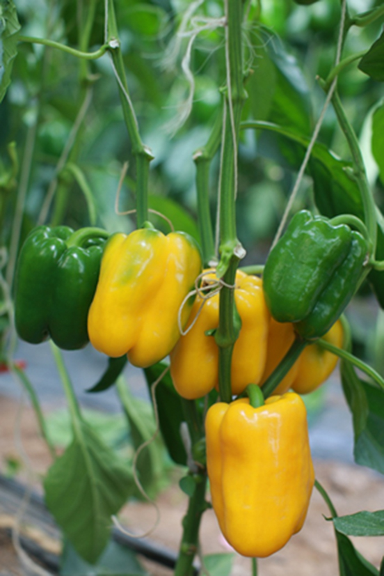 今年这部分品种以高端设施蔬菜(甜辣椒)育种为目标,试验和展示的品种分为五个主要类型,适合温室栽培的甜椒、彩椒、红泡椒、羊角椒、螺丝椒。目前看,这几类品种中都有部分组合超过了对照品种,并且受到中间商和种植户的高度肯定。