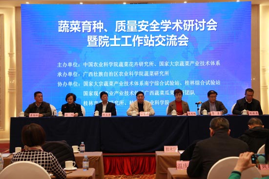 12月7日,“蔬菜育种、质量安全学术研讨会暨院士工作站交流会”在广西桂林举行。中国工程院方智远院士、国家大宗蔬菜产业技术体系首席科学家杜永臣、中国农科院人事局人才处季勇处长、蔬菜花卉研究所胡鸿副所长、广西农业科学院陈彩虹副院长、桂林农业局党组成员李劲松、蔬菜花卉研究所办公室(人事处)李海芬处长等出席会议并致辞。