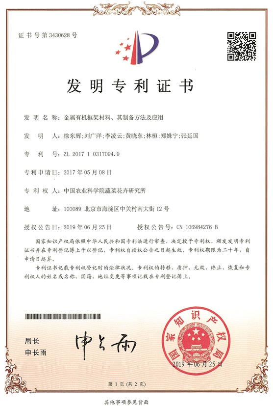 近日,农业农村部蔬菜产品质量安全控制重点实验室在新烟碱类农药残留快速检测技术研发方面取得重要进展,相关研究成果获得2项国家发明专利授权(ZL 201710238184.9;ZL 201710317094.9)。
