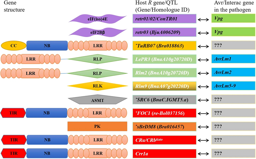 图2 芸薹属作物中已克隆的抗性基因及对应的病原菌无毒/互作因子