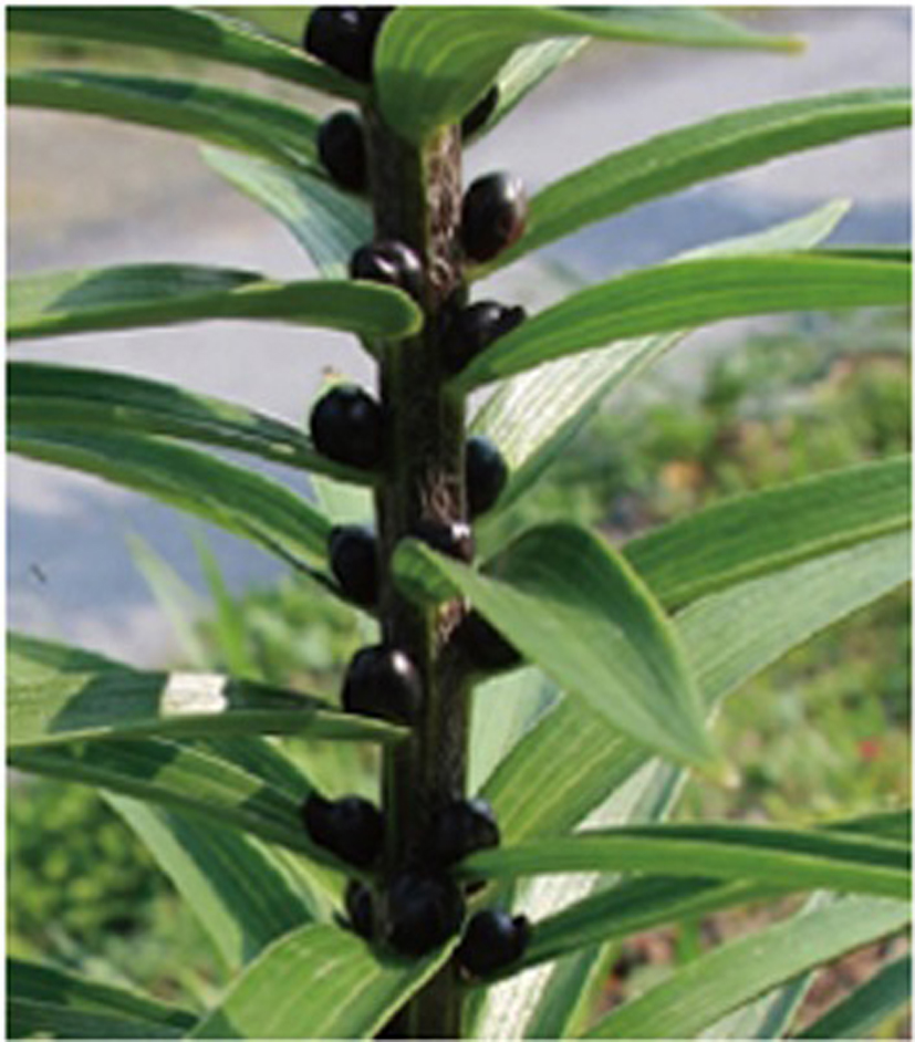 百合珠芽指贮藏养分、形态肥大的芽,也叫零余子,着生在植物地上部分的叶腋处。对百合属植物而言,珠芽是其部分种类重要的繁殖器官。其中,重要的食用和药用百合卷丹(Lilium lancifolium)是自然三倍体种,不产生种子,其种群自然传播繁殖完全依赖珠芽。