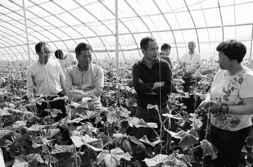 李君明和专家们在黄瓜大棚