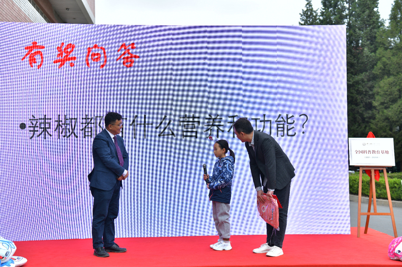 在活动现场,王立浩研究员围绕辣椒的故事带来一场精彩的科普演讲,他介绍了有关辣椒的品种、起源与传播、营养与特色、辣椒育种知识等。现场的小朋友们听得津津有味,并踊跃上台回答科学问题。