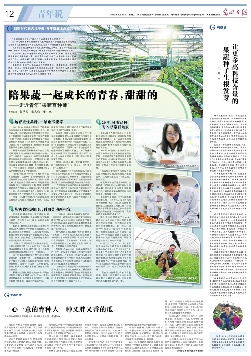 【光明日报】客户端-陪果蔬一起成长的青春,甜甜的——走近青年“果蔬育种师”