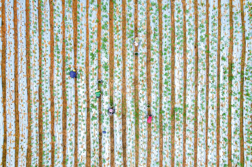 近日,在位于青秀区长塘镇天堂村的中国农业科学院蔬菜花卉研究所华南研发中心露天试验田里,番茄、芥蓝、菜心等1735个品种的植株长势良好,工作人员穿梭其中,忙着整枝、除草,一派繁忙的劳作景象。