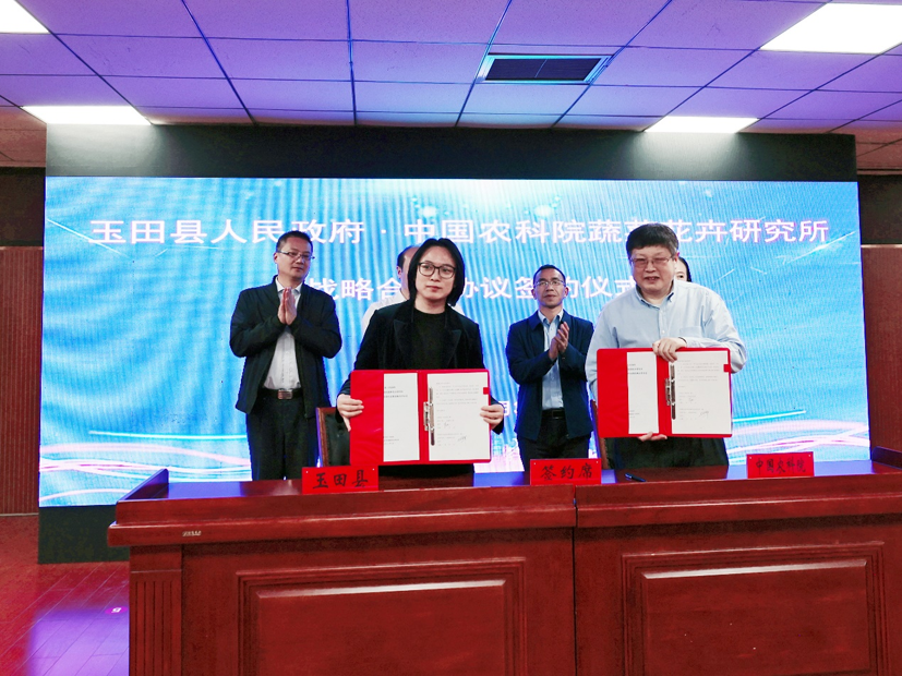 中国蔬菜花卉研究所与河北玉田县签订蔬菜产业绿色发展合作协议。