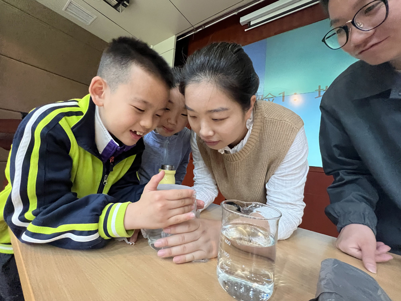 研究人员带领小朋友做地膜小实验。中国农科院环发所供图