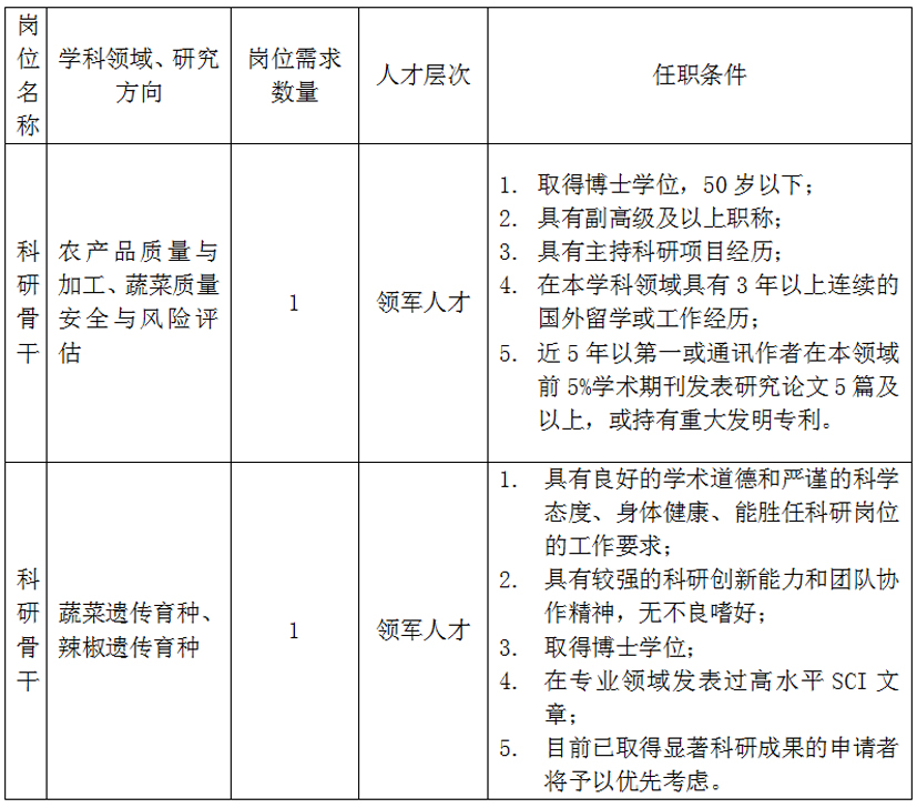 根据《中国农业科学院农科英才特殊支持管理办法》等相关文件要求,经中国农业科学院批准,蔬菜花卉研究所现面向社会招聘“农科英才”人才,现就有关事项公告如下: