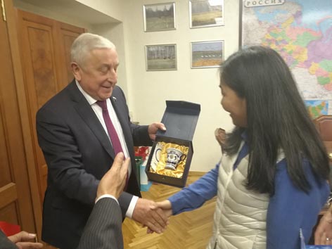 双方的合作得到了俄罗斯国家杜马和农业部的高度重视,出访期间,金黎平一行还受到了俄罗斯杜马远东经济发展委员会主席米哈伊洛维奇·哈里托诺夫(Mihajlovich N. Haritonov)、农业部种植业司司长皮楚·切科马列夫(Petr Chekmarev)和国际合作司司长奥利枸·戈尔申娜(Olgo Garshina)的亲切接见。俄罗斯国家杜马米哈伊洛维奇·哈里托诺夫主席和农业部均表达了与中国在马铃薯和蔬菜领域合作的意愿,并对成立“中俄马铃薯遗传育种联合实验室”给予充分肯定。