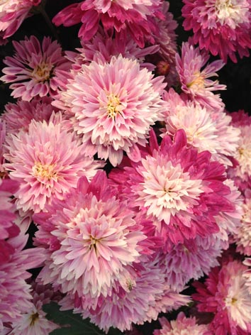 这8个品种均属于地被小菊系列,秋季开花,适合北方地区露地栽培,可应用到城市绿化、景观布景等中。其中,新品种“黄亮亮”侧枝发达,株型低矮圆整紧凑,属严格短日照植物,抗性较强,花色靓丽,北京地区自然花期为9月下旬到10月中旬。新品种“香草冰淇淋”、“粉冰晶”均通过辐射诱变选育而成。“香草冰淇淋”株型低矮圆整,抗性强,越冬后脚芽繁多,翌年冠幅可达1米,花奶油色,中心淡黄色,北京地区自然花期为9月上旬到10月初。“粉冰晶”花粉色,花瓣先端浅裂似雪花,故而命名‘粉冰晶’。该品种花色、花型皆具观赏价值,盆栽、地栽效果皆好,北京地区自然花期为9月中下旬到10月中下旬。新品种“粉蝶”抗性强,耐高温高湿,耐粗放管理;花多花密,花色靓丽,开花早,北京地区自然花期为8月下旬到9月上旬。