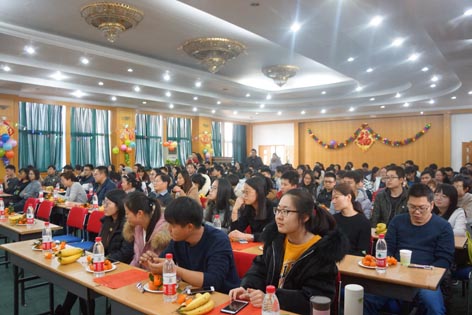 正值2018年到来之际,为丰富所内学生生活,加强师生情感交流,我所于2017年12月27日下午在实验楼大报告厅举办了2018年元旦师生联谊会。出席本次联谊会的有科研处处长张圣平、顾兴芳、王万兴老师等,全体师生共庆新年,联谊会场面热烈,大家掌声不断,一片欢声笑语。