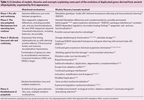 植物基因组多倍化后的各个时期中,基因组和多拷贝基因进化相关的概念、理论和模型等。