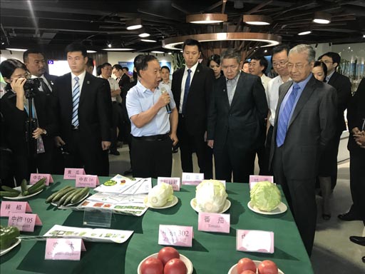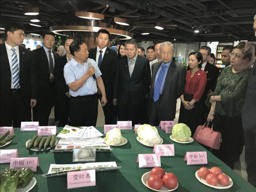 马来西亚总理马哈蒂尔·穆罕默德参观中国农业科学院蔬菜花卉研究所成果展示