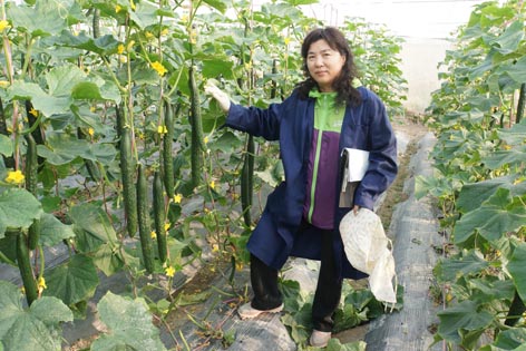 黄瓜生育周期短,在一年之中播种茬口最多可以达到6次,远远高于部分蔬菜的2到3次。在夏季,温室大棚里的温度平均要比外面高8至10度,酷热难耐,而顾兴芳和她的同事们需要把试验田里十几亩地的黄瓜逐一地人工授粉、选种,观察并记录生长情况,经常需要穿梭于北京的4处黄瓜试验田和农场。尤其每年“五一”、“十一”长假,正是授粉旺季,团队成员们积极主动加班,顶烈日、冒酷暑,尽职尽责地完成科研任务。