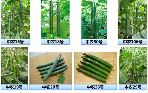 目前,中农16号为北京、辽宁、黑龙江、天津、河北等省市的主栽品种,总种植面积和播种面积均占在55%以上,其中占黑龙江双城和河北香河黄瓜播种面积的80%以上。中农26号为辽宁省日光温室种植面积最大的黄瓜品种,占瓦房店及锦州日光温室黄瓜种植面积的80%以上,被评价为保护地最抗病的品种,约占北京、河北、天津等省市黄瓜栽培面积的50%以上。中农106号成为广东、云南、浙江、贵州、福建、广西等省区的主栽品种,占主产区栽培面积的30%以上。在云南保山南菜北运基地栽培的中农106号,沿潞江坝两岸绵延数公里,栽培面积达万亩,为当地扶贫增加一抹青绿。水果黄瓜中农19号和29号在北京、宁夏、云南、山东、西藏、新疆等地,深受菜农欢迎。中农18号被农业部列为2014年度黄瓜唯一主导品种。中农50号成为河北、山东、浙江、贵州等省主产区的主栽品种。