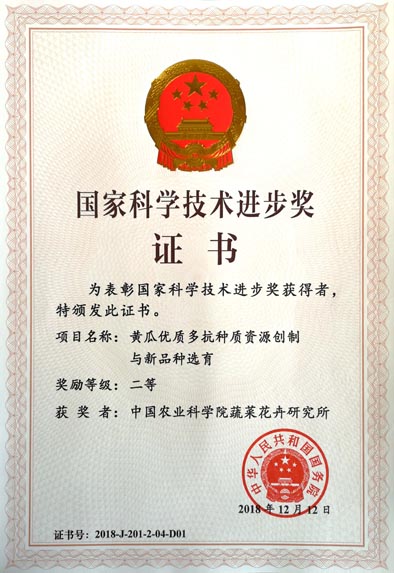 成果名称:黄瓜优质多抗种质资源创制与新品种选育