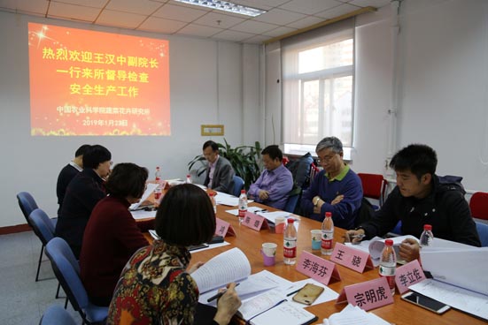 所党委书记周霞、副所长胡鸿以及科研处、人事处、后勤服务中心第一责任人等安全生产领导小组成员参加会议。胡鸿向检查组汇报了研究所关于安全生产工作有关情况,周霞做了补充。陈璐指出:安全是第一大事,抓好安全生产工作,必须提高认识;要加强监管,突出重点;夯实基础,建立长效机制;要加强领导责任落实,突出火灾隐患排查;必须严格值班值守制度。王汉中副院长要求并强调:认识问题是重点,必须在现有认识上进一步提高;要把防止恶性重大事故发生放在首位;安全生产要做到防患于未然,不能存在侥幸心理。