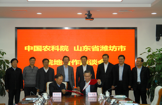 中国农业科学院院办主任高士军、成果转化局局长王述民及潍坊市委副书记、寿光市委书记林红玉、潍坊市委秘书长刘建国、潍坊市副市长马清民等领导见证签约仪式。