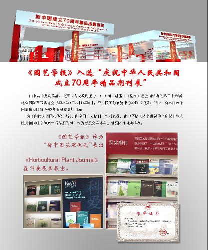 8月21日-25日,由中国期刊协会组织的“庆祝中华人民共和国成立70周年精品期刊展”上获悉,《园艺学报》、《中国蔬菜》荣幸入选“庆祝中华人民共和国成立70周年精品期刊展”。该展向伟大祖国70华诞献礼,并设“70年精品期刊”“主题宣传好文章”“致敬创刊70年”“70年期刊记忆”四大主题。