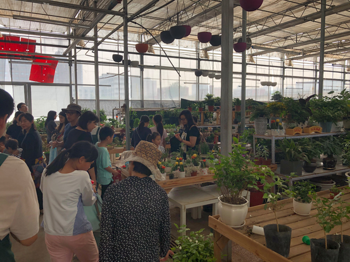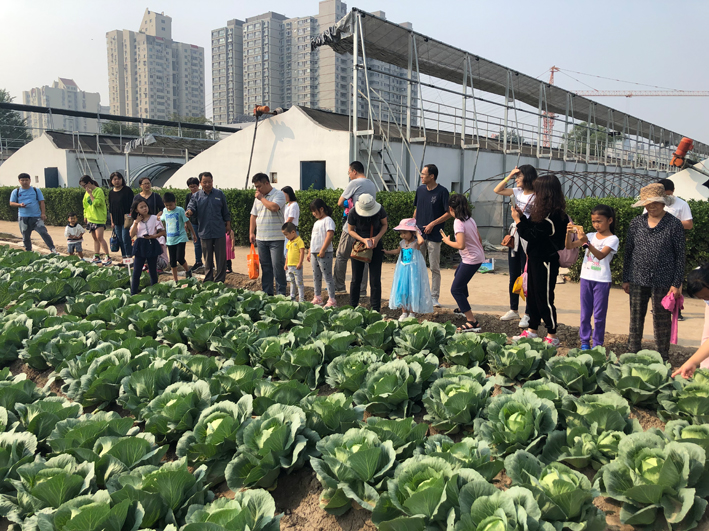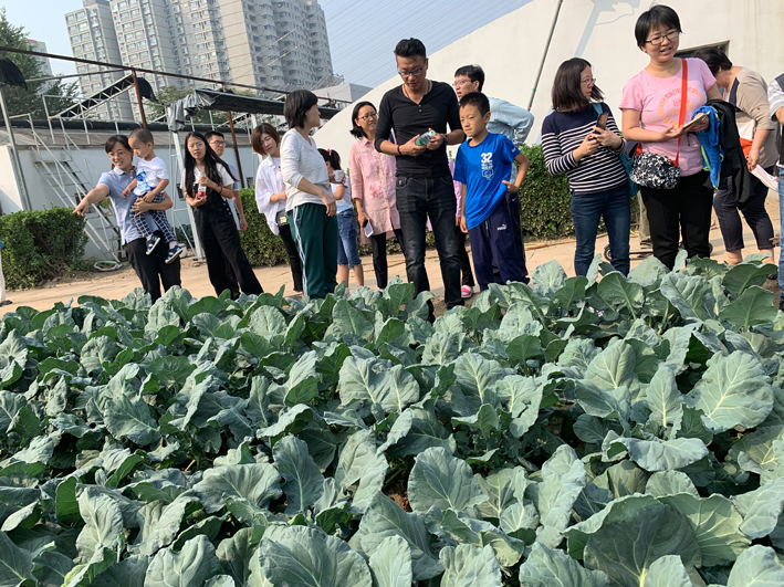 社会公众还参观了研究所南区黄瓜、番茄温室和青花菜、甘蓝等特色优良露地蔬菜。大小形态各异的黄瓜、生长期的青花菜和还未结球的甘蓝吸引了小朋友的眼球。实验农场场长马宾生耐心细致地讲解黄瓜授粉过程和水肥管理等问题。