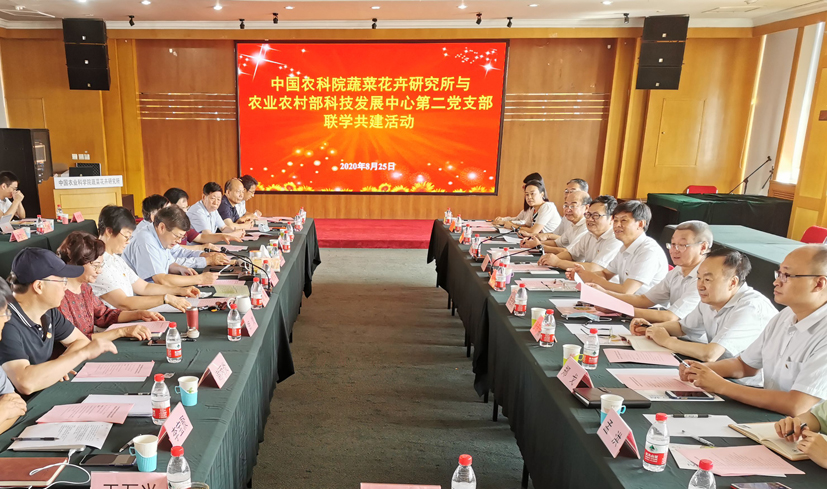 8月25日上午,中国农业科学院蔬菜花卉研究所与农业农村部科技发展中心第二党支部举办联学共建活动,科技发展中心党委书记杨礼胜、主任杨雄年带队,蔬菜花卉研究所领导班子、团队首席、中层干部等参加,共计33人,所长张友军主持会议。