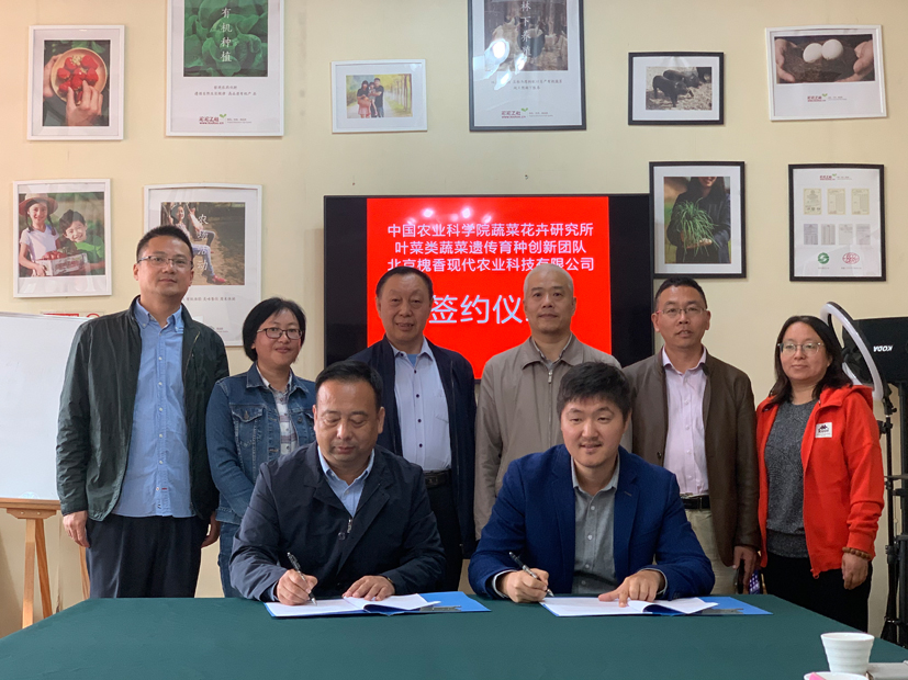 10月10日,中国农业科学院蔬菜花卉研究所叶菜类蔬菜遗传育种创新团队与北京市槐香现代农业科技有限公司签署了战略合作协议。北京市平谷区科信局副局长魏连启、中国农业科学院蔬菜花卉研究所成果转化处处长李衍素、叶菜类蔬菜遗传育种团队首席张淑江、孙日飞研究员、沱沱公社首席运营官王冕、槐香现代农业科技有限公司经理许海玲、潘建军等参加了签约仪式。