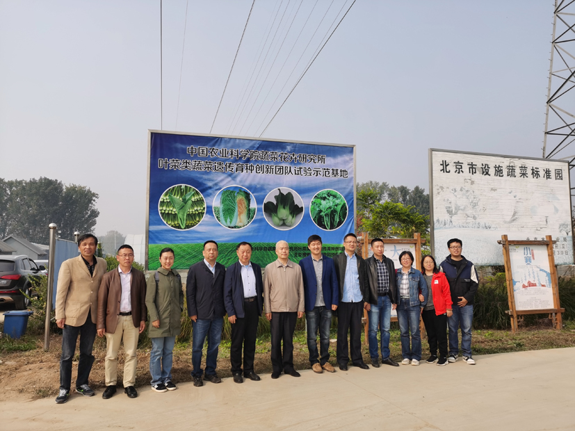 签约仪式后,许海玲、潘建军经理带领大家参观了槐香现代农业科技有限公司(沱沱公社下设子公司)的有机种植基地,介绍了近3年来与叶菜团队的合作情况。希望通过此次协议的签署,促使企业与研究所更紧密的合作,加快叶菜团队成果转化速度,为企业发展、平谷区农业科技建设贡献力量。最后大家在示范基地立牌处合影留念。