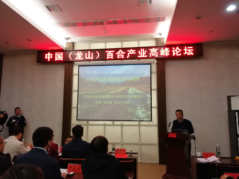 此次论坛由农业农村部扶贫办、中国园艺学会、湖南省农业农村厅、中国农业科学院蔬菜花卉研究所主办,湖南红网新媒体集团、龙山县委县政府、中国农业科学院蔬菜花卉研究所、中国农业科学院麻类研究所承办。旨在集聚百合全产业链资源,协调百合产业可持续发展,促进发挥百合在全国精准扶贫和乡村振兴中的作用。中国农业科学院蔬菜花卉研究所明军研究员、云南农科院贾文杰副研究员、兰州百合研究所张占军所长、湖南省邵阳农科院刘中阳副院长、江西省万载县委常委统战部长彭述荣、湖南龙山县委常委副县长涂洪涛博士、中国农科院麻类所高春生副研究员、辽宁农科院杨迎东研究员、甘肃省农科院林玉红研究员和山西农业大学杜方教授等专家分别对百合产业发展现状及面临挑战,云南省花卉产业与扶贫成效,各主产区百合产业状况以及百合食品安全风险防控等7个主题展开报告讨论,对百合产业未来发展提出有效建议。
