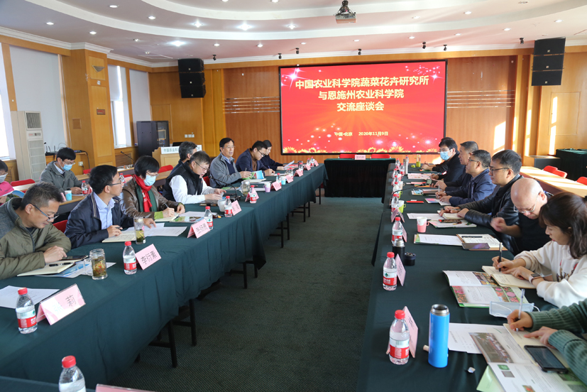 11月9日上午,湖北恩施州农科院院长李卫东一行8人到蔬菜花卉所调研,就进一步深化合作交流研讨。院人事局副局长李巨光、所长张友军、党委书记周霞、所领导班子成员和相关处室负责人出席。