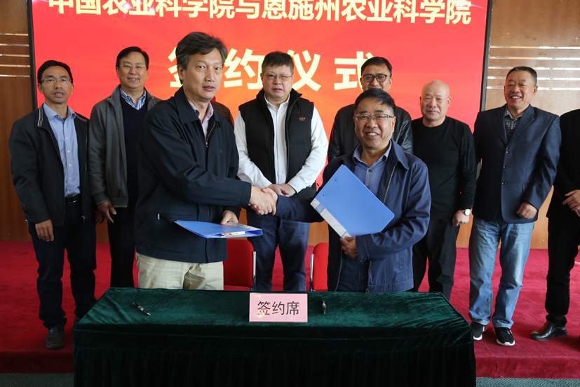 茆振川研究员首先做挂职恩施州农科院期间工作汇报。随后,院人事局、蔬菜所分别与恩施州农科院就博士后联合培养、富硒产业研究和生物菌肥研究签订合作协议,双方出席人员充分开展座谈交流。李卫东院长一行还参观了质检中心和生物技术室实验室。