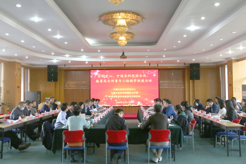 2020年11月13日,中国农业科学院蔬菜花卉研究所与中国农村技术开发中心、中国农业科学院国际合作局共同举办联学联建活动。中国农业科学院副院长、党组成员孙坦、中国农村技术开发中心主任邓小明、副主任孙传范、中国农业科学院国际合作局局长张亚辉、蔬菜花卉所所长张友军等出席会议。会议由中国农业科学院国际合作局副局长柯小华主持。