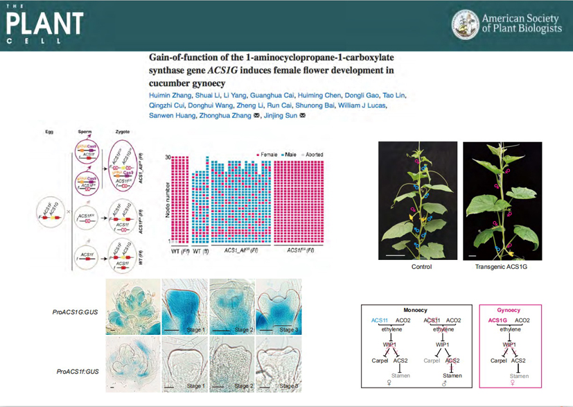 近期,中国农业科学院蔬菜花卉研究所功能基因课题组首次证实了黄瓜中显性全雌基因(Female)编码乙烯合成途径中的关键酶ACS1G,并深入研究了其作用机制。相关研究内容《Gain-of-function of the 1-aminocyclopropane-1-carboxylate synthase gene ACS1G induces female flower development in cucumber gynoecy》于12月2日在线发表于《The Plant Cell》上。